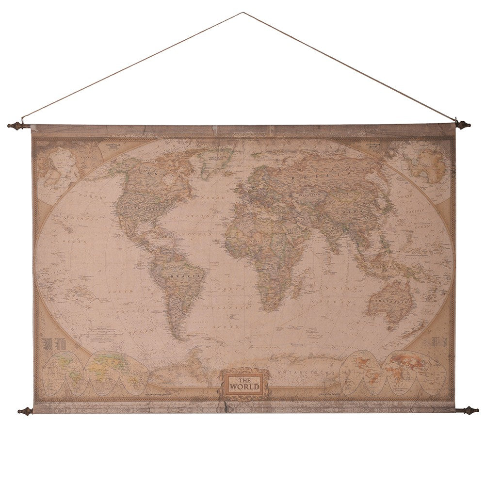 Antique Style World Map Wall Hanging