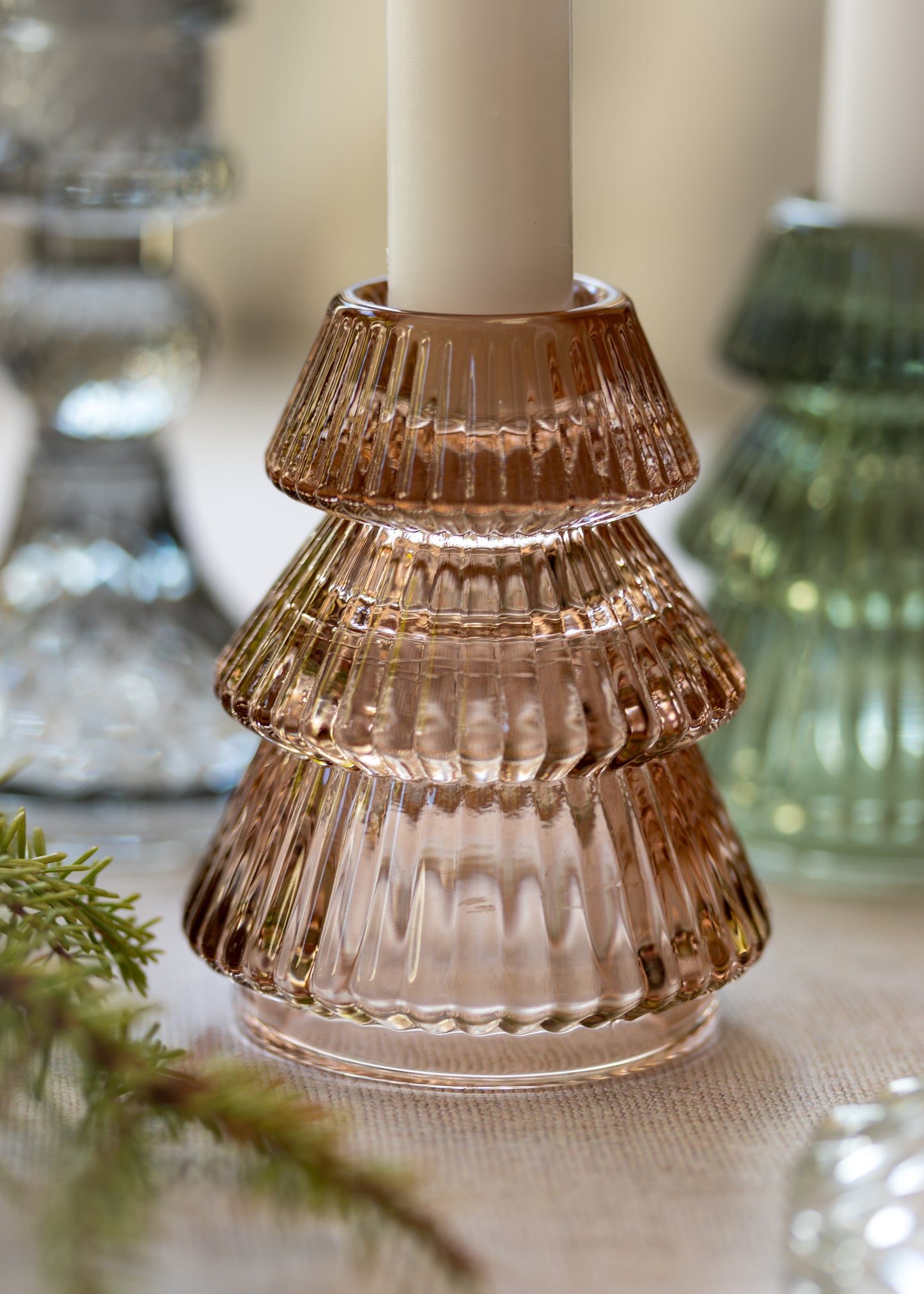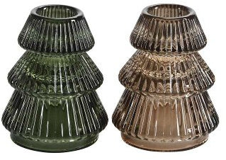 Bring festive warmth to your dinner table with this charming glass Christmas tree candle holder. Available in green or taupe, it's the perfect way to add understated elegance to any room this season.